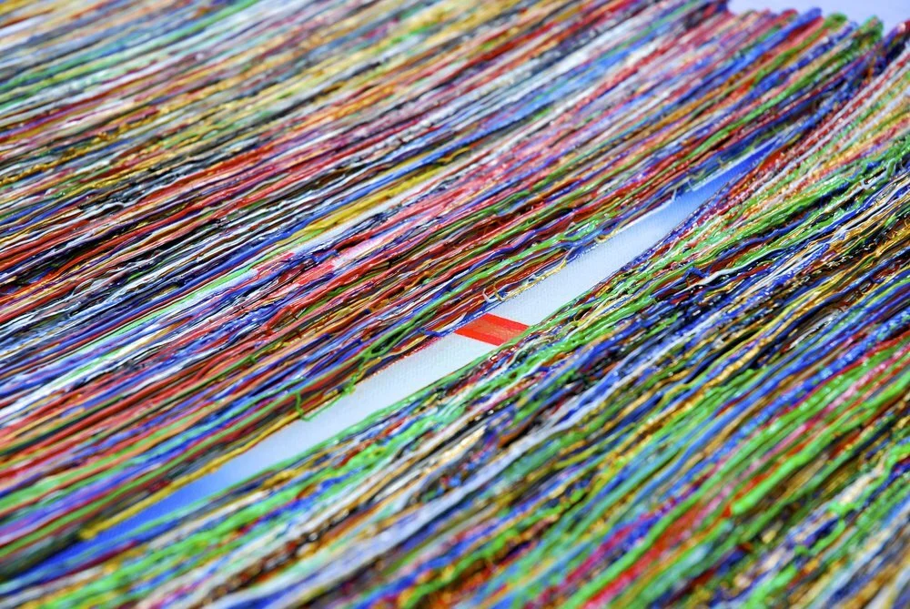 How to be Both is a dual narrative: one strand of which concerns a bereaved teenager in present-day Cambridge and the other is about Francesco del Cossa, a fifteenth century fresco painter. A del Cossa altarpiece in the National Gallery links the two narratives which also merge in many other ways concerning the nature of time, art, grief and gender. The background of my painting is an abstracted nod to this del Cossa painting - with a corraline stripe in an azure sky echoing the fantastical clouds common to such altarpieces. Apparently two versions of the text were published, with differing narratives appearing first. For this reason, in my painting the two stories begin at either end of the canvas and merge in the middle. The painting can be hung either way up.